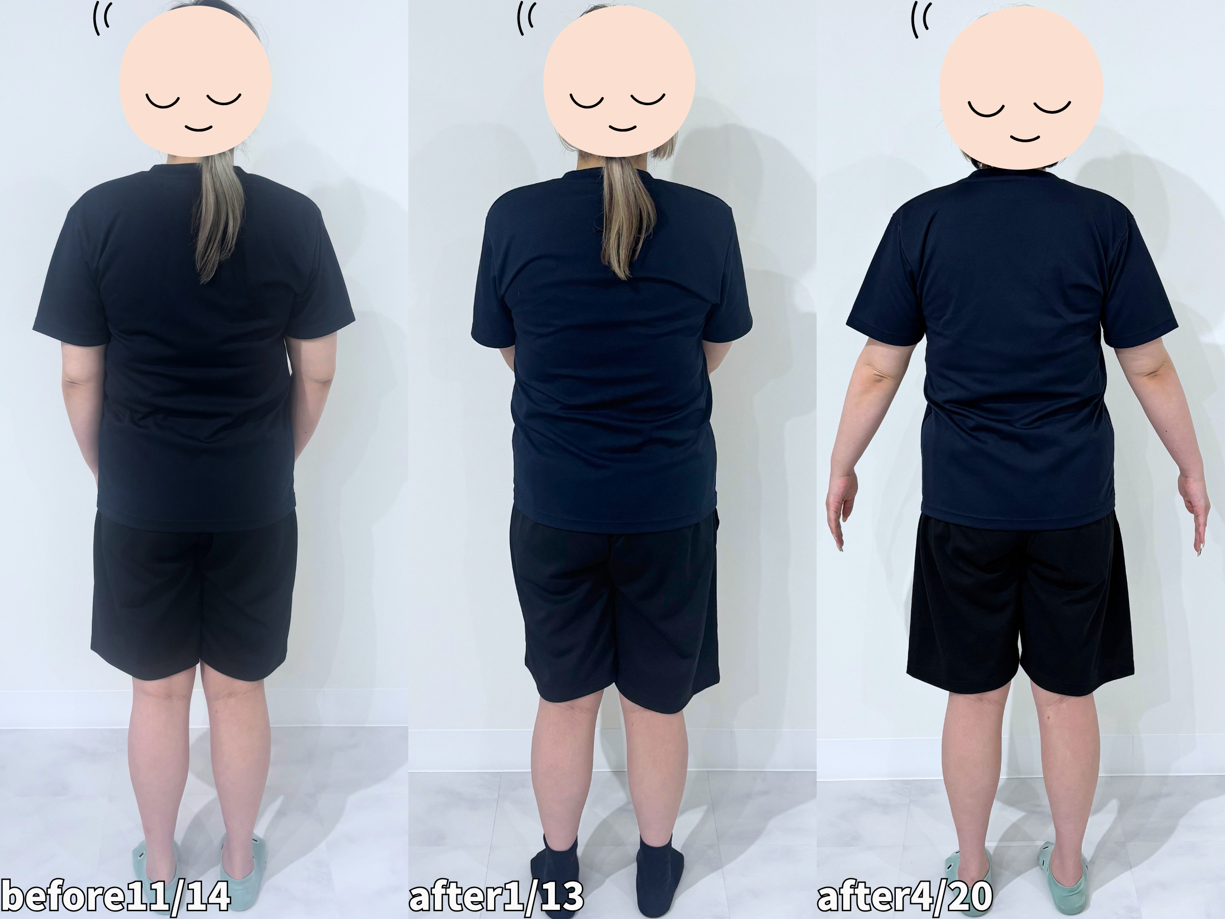 ずっと悩まされてきた肩こり腰痛がすごく楽になりました。改めて運動は大切だなと感じました。カラダが自由に動くことでストレスフリーです!(編集中)